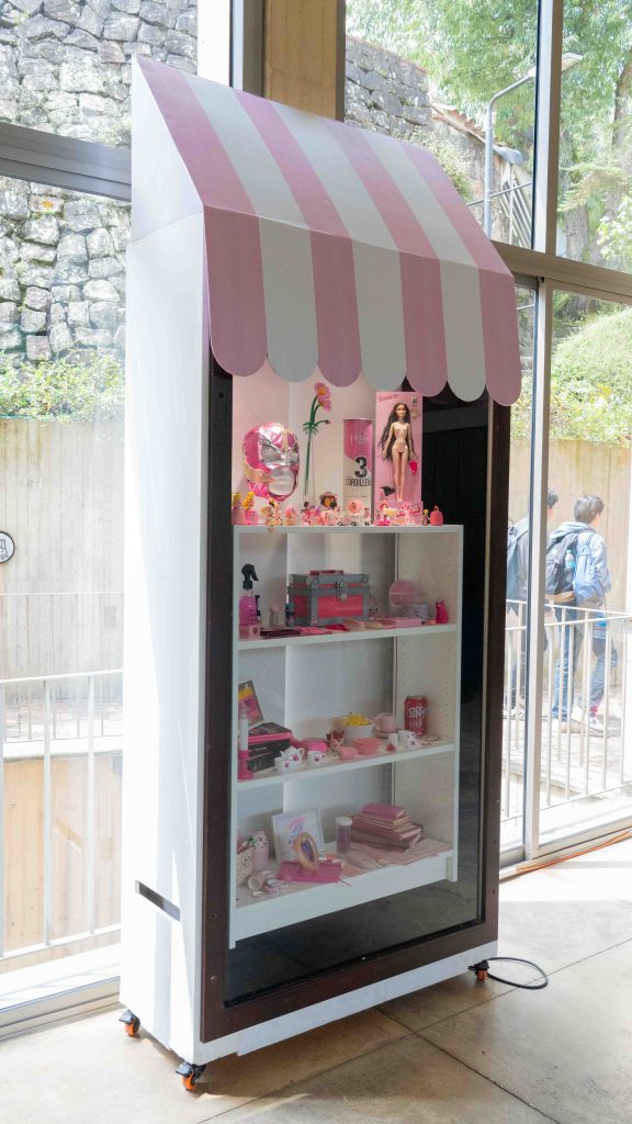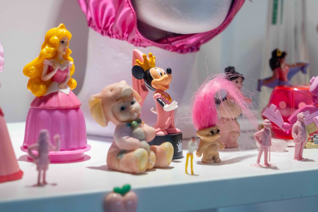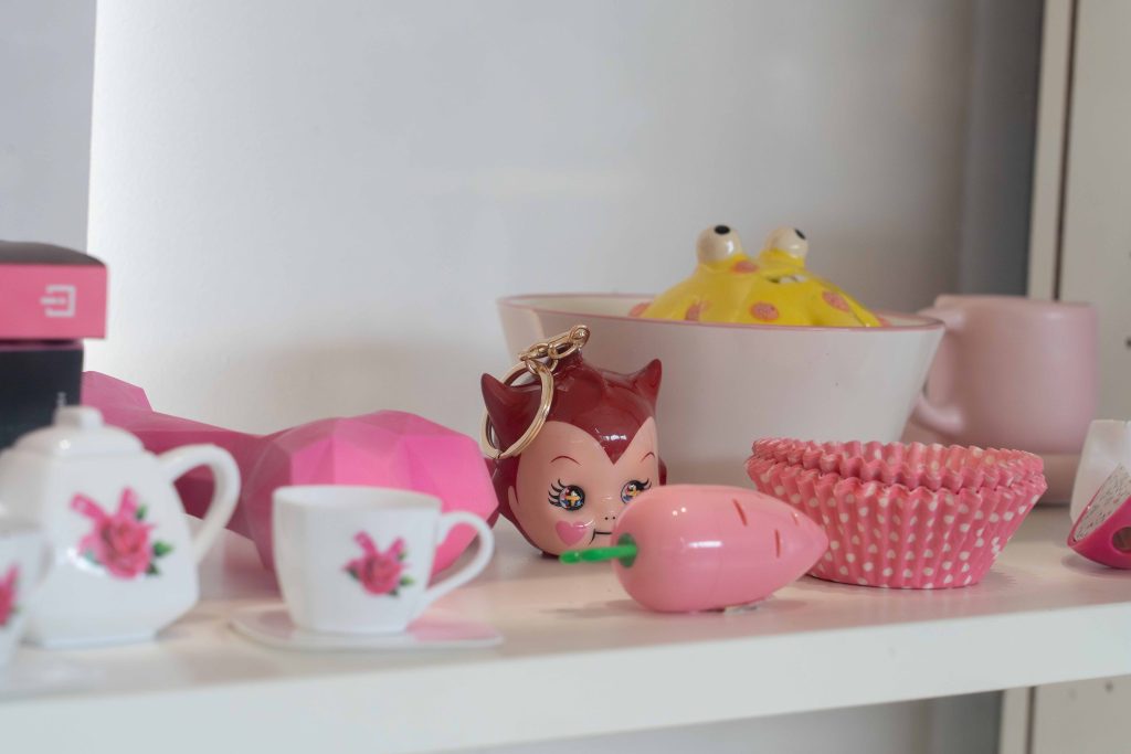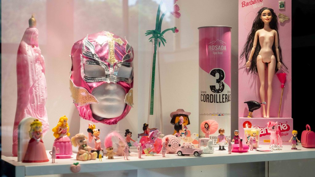 Este gabinete íntimo de curiosidades dialoga con la tradición de las señoras que organizaban vitrinas domésticas para mostrar vajillas, figuritas o recuerdos de viaje: un gesto de cuidado y de orgullo que, en mi caso, se desplaza hacia un universo kitsch, infantil y juguetón.